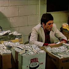 Capo’s greed meets the banker’s/looking for any and all takers/cooking in Bahamas/Tony’s papers/riches from mad capers/crap shoots/cameras monitoring for clues/of investigations and feuds/making more money than Howard Hughes/$10 million to $15 million in dues/roughly monthly income/not a wholesale operation/smooth no complications/banker pleads/indeed/this is a legit corporation/cleaned up image/of laundered millions/takes cooperation/streets go low/bankers go high/that’s the basics of this life/can’t take all that income/without rousing suspicions/ IRS will institute their mission statement/banker talks recessions/and stakeholder mentions/10% on ten million is proposed take/makes Tony react with tension/ready for contention/greedy banker with sneaky intentions/convincing Scarface whom to trust/not an oversees bank teller/big seller/big smile/your in good hands with style/princess doing coke vials/squeezed again for purse/Manny’s got another exchanger/to clean mess/Jewish guy with Italian connects/Tony retorts/snorts more lines/pigs don’t fly/they get fried/brain wired/no trust/cameras on truss/counter surveillance/money pitfall of millions/illicit trades of lost children/getting Sloppy/Miami backdrop of barn yards/for drug yarns/night clubs up as the sun turns/putting Tony’s money to work.